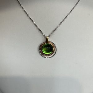 In der Mitte den grünen Bernstein in runder Fassung
