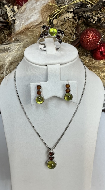 unterer Stein grüner Bernstein in Fassung 9 mm